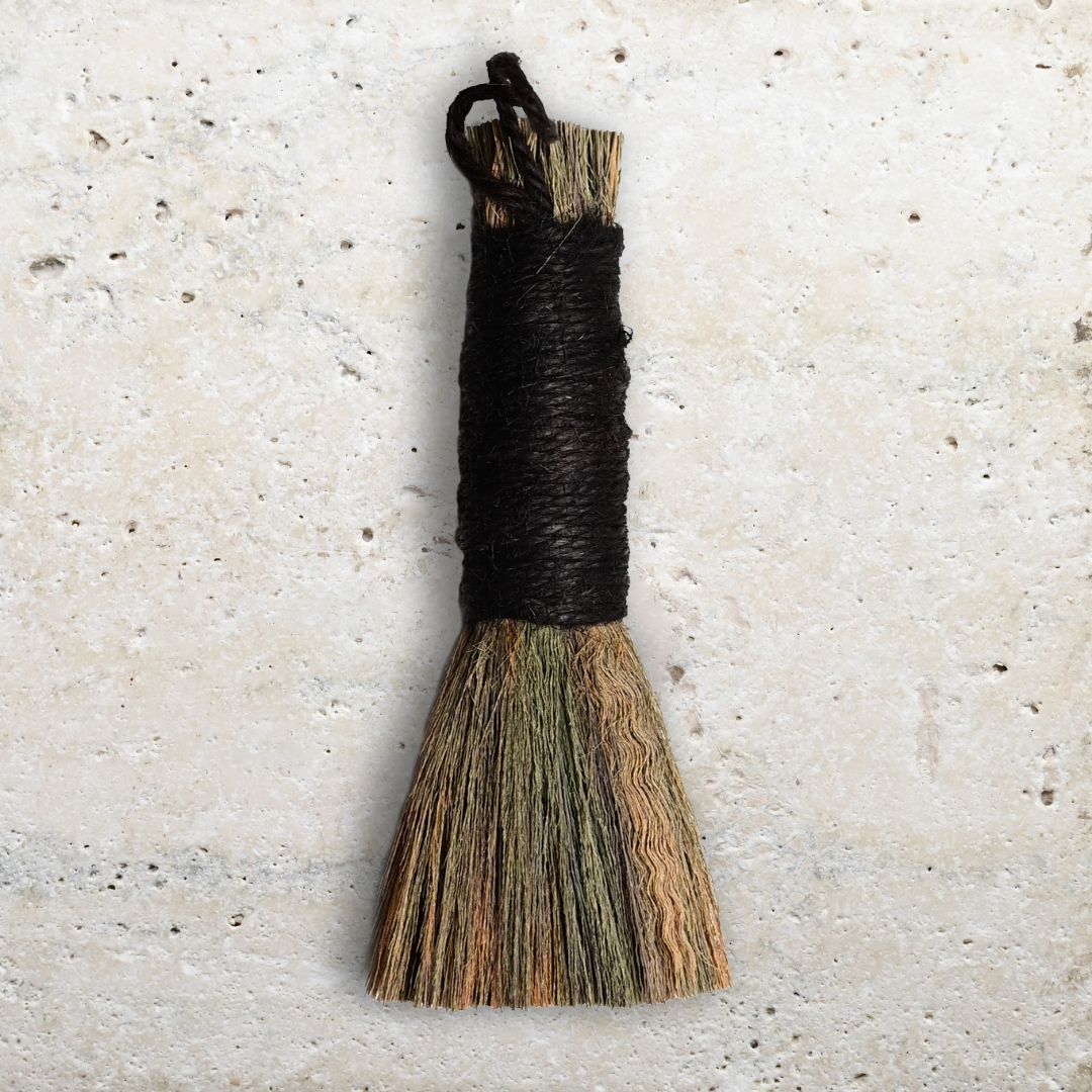 The Kuchō Incense Broom is a traditional tool from Nepal, thoughtfully crafted to support rituals and mindful practices. With natural fibers bound by hand, it offers a gentle, refined way to guide incense smoke through your space, and remove the ash after smudging or incense bruning.